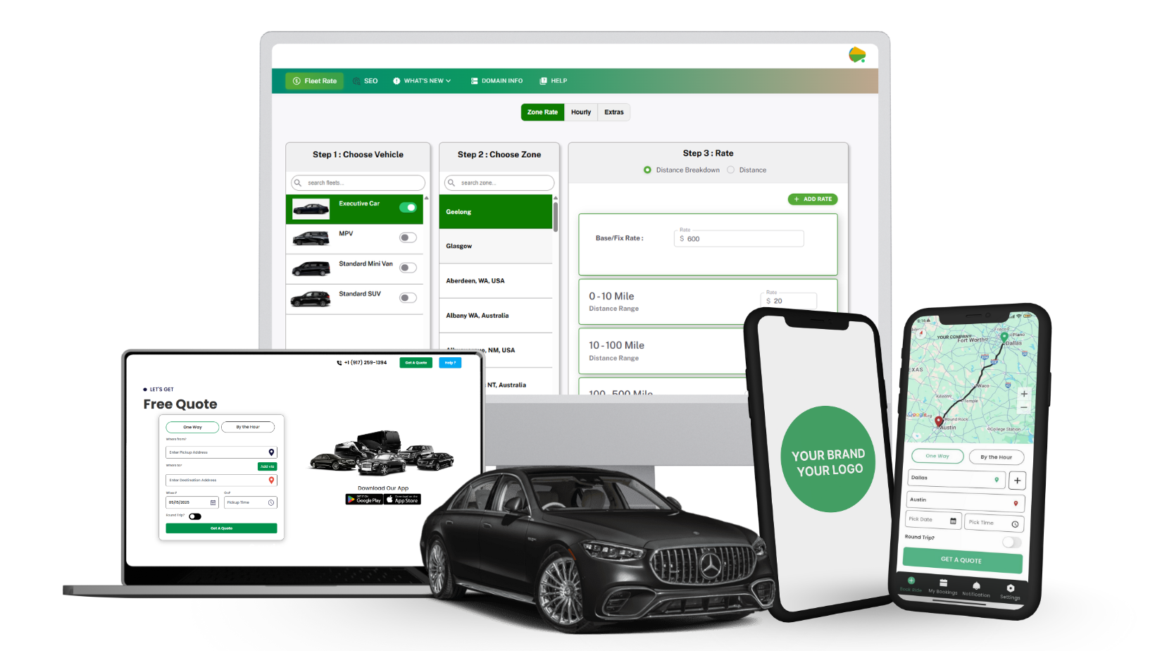 A branded online booking platform for your customers. Let's you book rides directly from your website, fully customized with your brand Logo identity.